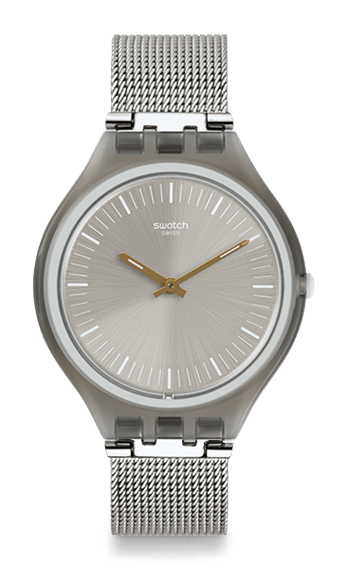 Uhrenmarke Produzenten Beschreibung Die SKIN markiert den Beginn einer neuen Ära für Swatch's dünnste Uhrenlinie. Inspiriert durch den Nervenkitzel des Unbekannten, die Schönheit der Bewegung und die Vorwegnahme des Wandels, stellt Swatch's SKIN Kollektion elf minimalistische Stile in zwei neuen Grössen für Männer und Frauen vor. (S) 2017 SWATCH |